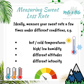 Ideally you should measure your sweat rates a few times under different conditions to get a more accurate estimate of your fluid needs. For example, you should try to estimate your sweat loss rate in both hot and cold temperatures, high and low humidity, different altitudes and different intensity.